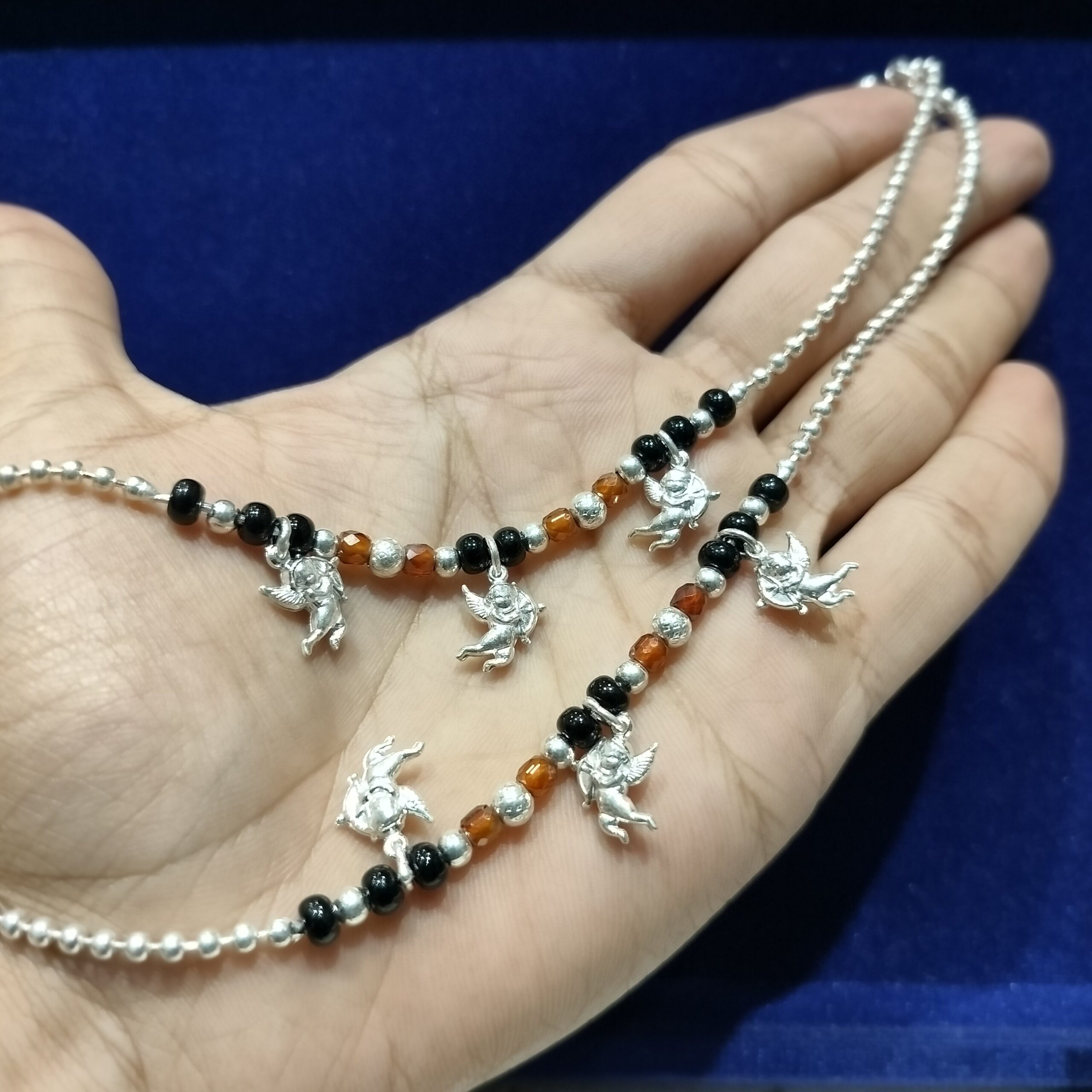 Black & amber beads with protective charm motifs for a boho twist.