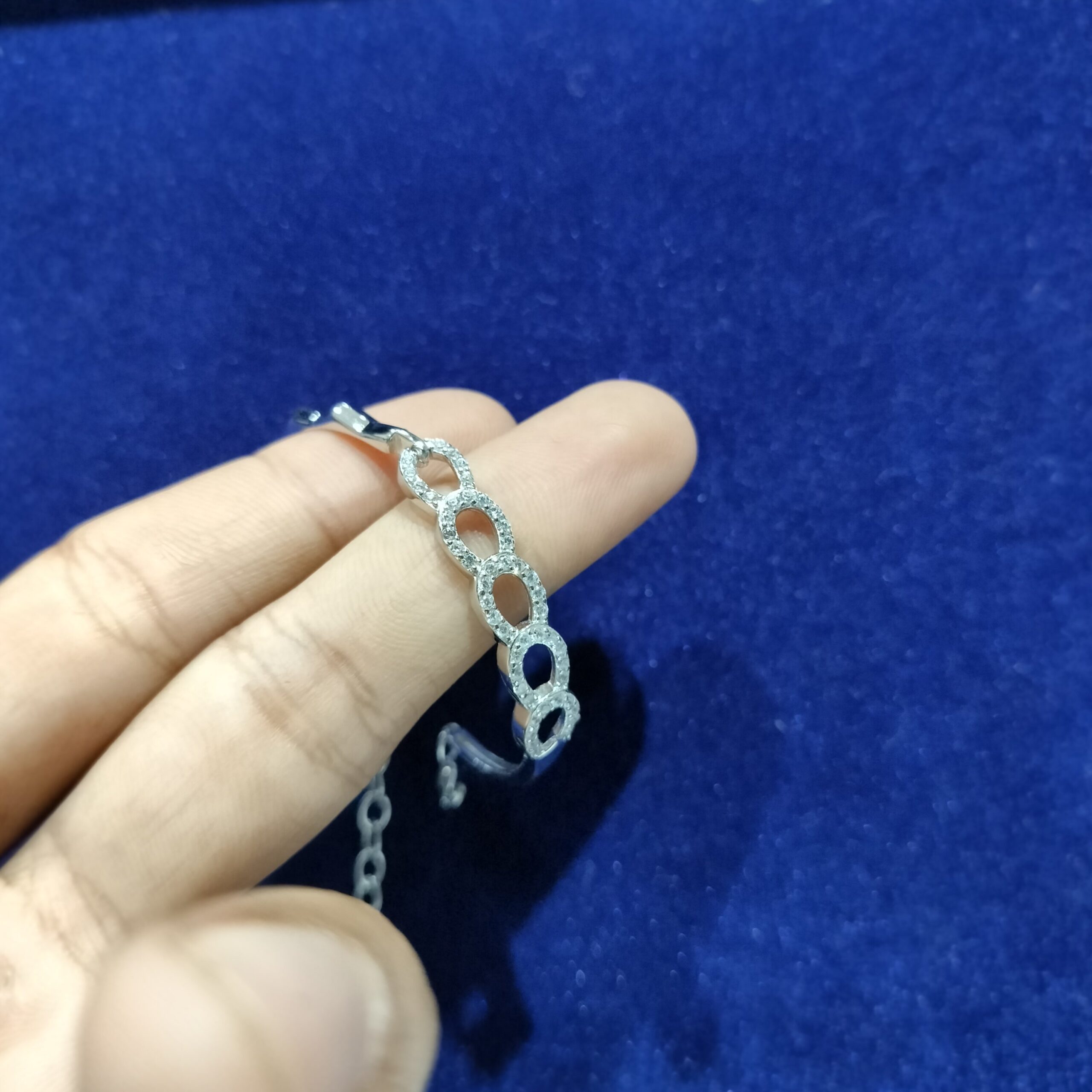 Infinite silver Bracelet is designed to symbolize strength and unity, featuring interlocked oval links studded with sparkling CZ stones.