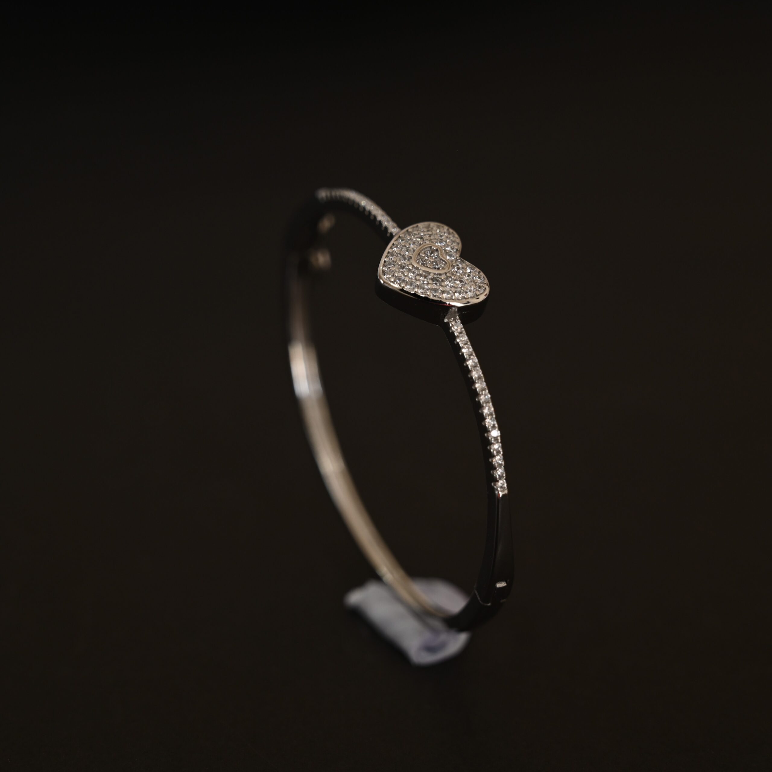 Handcrafted in 925 Sterling Silver, this kada highlights two hearts ? one polished, one studded with CZ stones ? that create a striking modern look. Its fine detailing and high-quality finish make it an eye-catching accessory.
