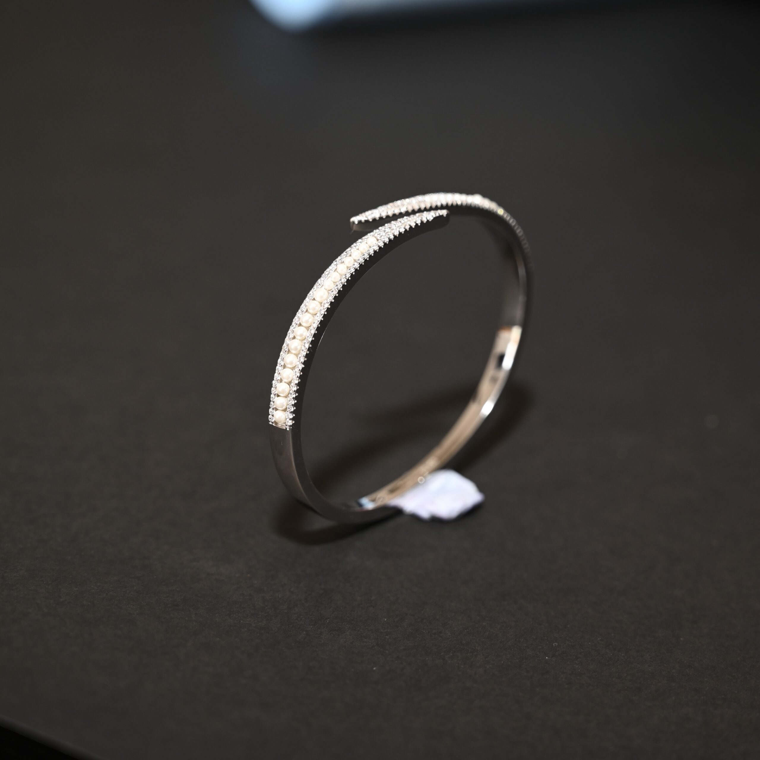 Made with 925 Sterling Silver, the kada features a contemporary open-end design with a row of shimmering CZ stones. The fine detailing adds a touch of class while keeping it light and wearable.