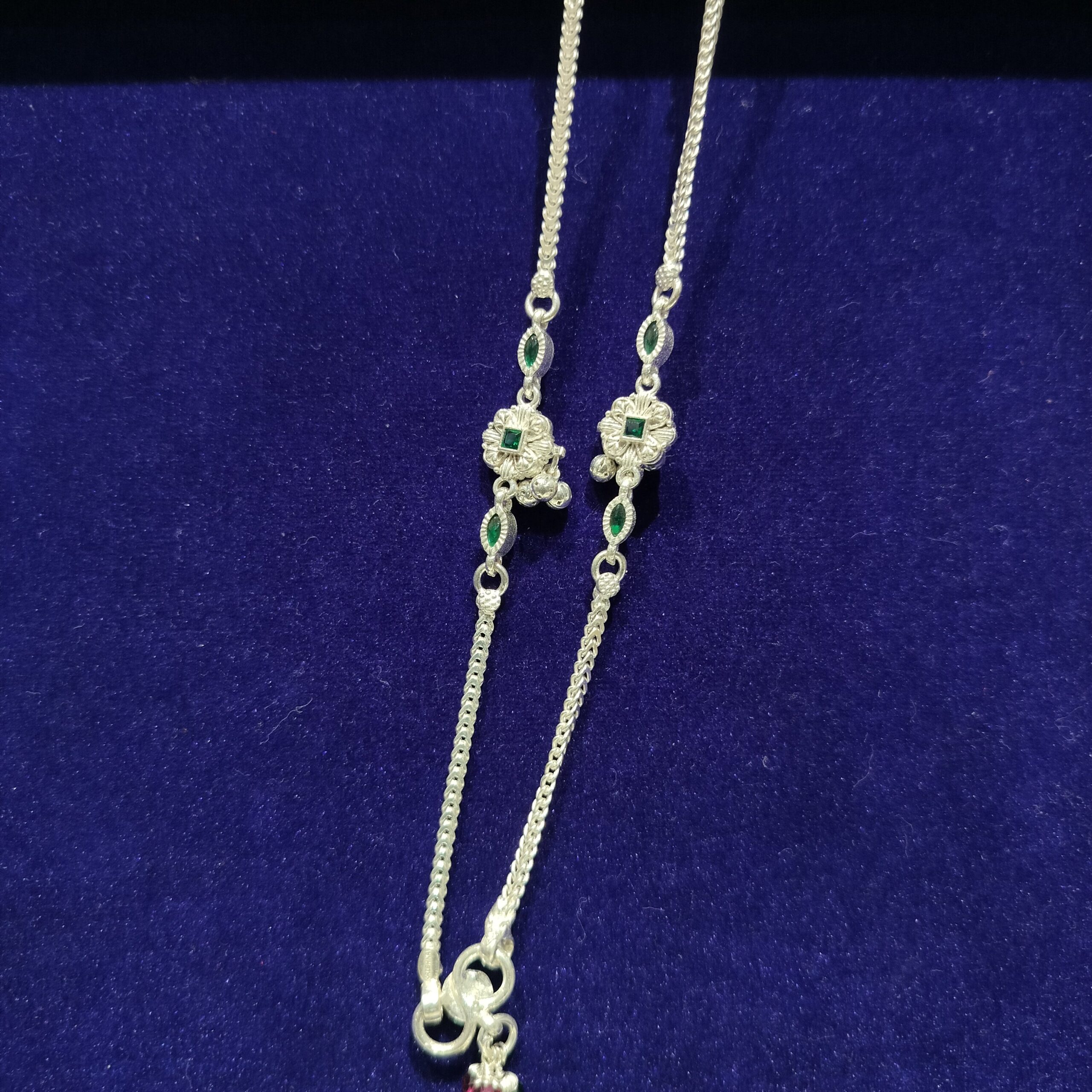 Traditional anklet with green accents and petite ghungroo charms.